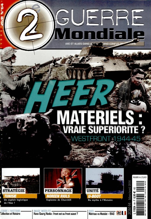- Heer 1944-45. Equipement et matériels: vraie supériorité ? A nouveau Benoît Rondeau à la baguette pour ce dossier central du magazine. L’auteur va décortiquer les équipements allemands, leur évolution et les comparer à ceux de leurs adversaires tant sur le front ouest qu’en Italie. C’est original et franchement bien mené. Uniformes, équipement individuel du soldat, armes individuelles, armes collectives, armes anti-chars, artillerie, blindés, motorisation des unités. Avec tableaux comparatifs.