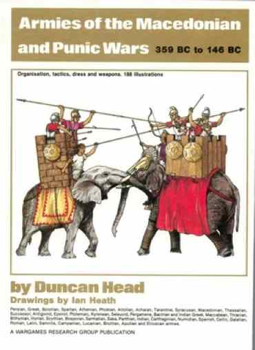 Duncan Head nous présente ici les armées des guerres macédoniennes et des guerres puniques. Les guerres d’Alexandre, de ses Successeurs, la confrontation entre Rome et les Macédoniens et entre Rome et Carthage sont donc au rendez-vous. Présentation exhaustive de l’organisation et de l’équipement des armées, tactiques et batailles sont proposées. 188 illustrations malheureusement en N/B viennent soutenir cet ouvrage toujours indispensable pour les wargamers.