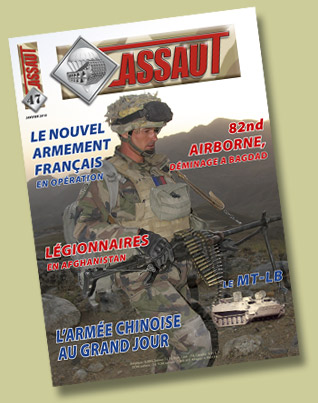 - Afghanistan 2009, montée en puissance technologique: le rédacteur en chef du magazine fait le point sur l’engagement de nouveaux matériels engagés sur le théâtre afghan: le VAB TOP (véhicule de l’avant blindé avec tourelle télé-opérée), le canon de 155mm Caesar, l’hélicoptère de combat Tigre qui connait un taux de disponibilité excellent de 93% ainsi que le drone Harfang toujours plus essentiel.