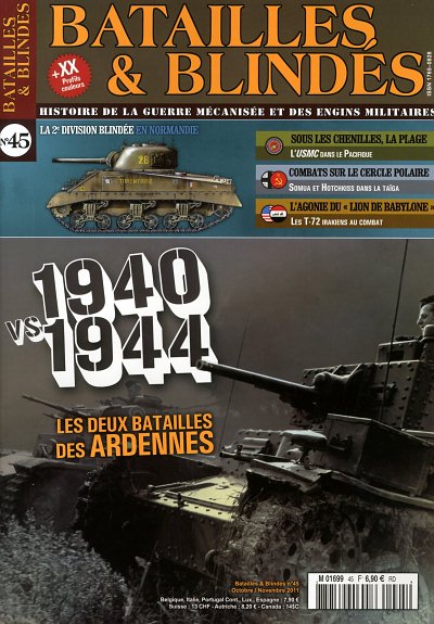 - Blitzkrieg, 1940 vs 1944, les deux batailles des Ardennes. Hughes Wenkin, pilier de la revue, nous propose une réflexion intelligente sur l’évolution de la blitzkrieg au cours de la seconde guerre mondiale. Dans un premier temps, il décrit les principes tactiques indispensables à la guerre de mouvement blindé (vitesse, concentration des moyens, surprise, coopération air-sol, exploitation. Ensuite, il livre ce qu’il considère comme les piliers indispensables à la blitzkrieg; à savoir: des troupes entraînées et autonomes, une chaîne de commandement réactive, un soutien adapté et un renseignement précis. Enfin, le gros de l’article consiste à comparer les deux campagnes sous l’angle du tempo opérationnel, de l’effet de surprise, de la supériorité numérique terrestre, de la supériorité aérienne, de l’état des piliers précédemment présentés. Bref, un article original et intelligent… à renouveler !