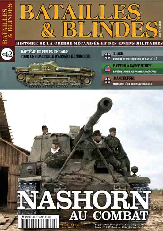 - Qui s’y frotte s’y pique. Le Nashorn au combat. Didier Laugier a compulsé plusieurs rapports sur l’engagement des chasseurs de chars lourds Hornisse et Nashorn sur le front de l’est en 43-44. Les déficiences de la formation des équipages, des approvisionnements et des équipements sont mis en valeur. La mauvaise doctrine d’emploi de l’arme et leurs combats sont également présentés.Avec beaux profils et tableau d’organisation d’une schwere panzerjäger-abteilung.