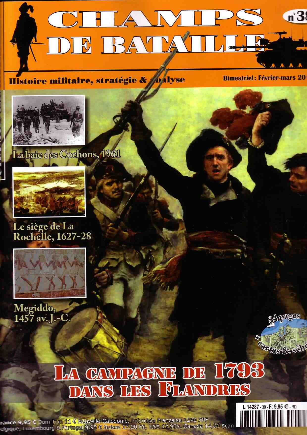 - La campagne de 1793 dans les Flandres. On rejoint ici les armées révolutionnaires dans leur défense du territoire national. Hughes Marquis nous emmène aux frontières du Nord prises entre guerre de siège, guerre de mouvement et batailles: Valenciennes, Le Quesnoy, Dunkerque, Hondschoote, Maubeuge et Wattignies. Manœuvres diplomatiques, mouvements des armées, valse des généraux, batailles et sièges viennent agrémenter un article clair largement appuyé de belles cartes, de bonnes reproductions et d’ordres de bataille. Que demander de plus ?