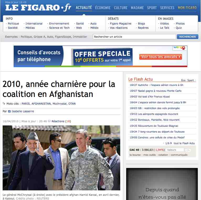 Le général McChrystal qui commande les troupes US en Afghanistan était de passage à Paris.