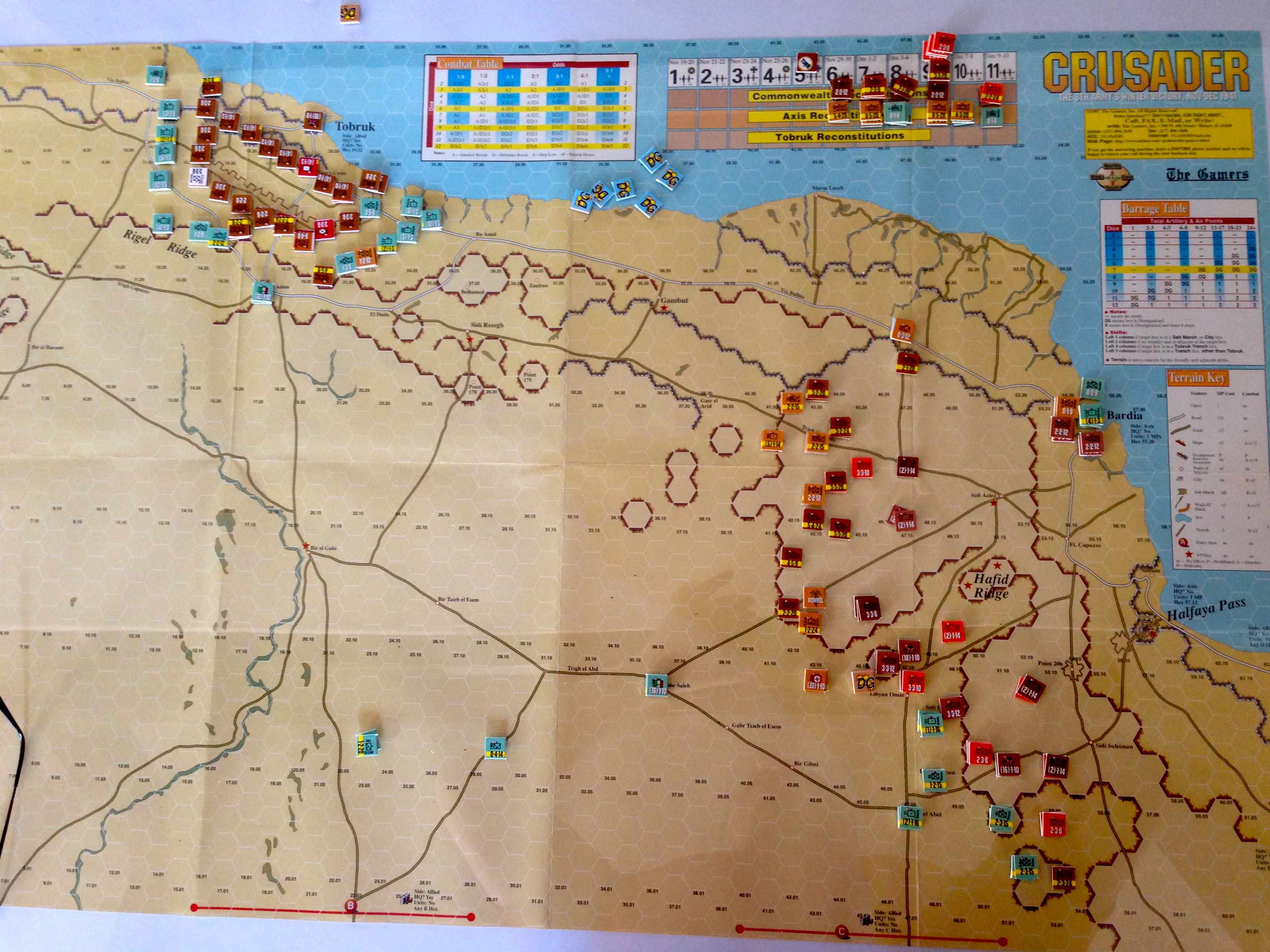 Au final: le plan britannique a fonctionné. Au 5ème tour, les Allemands ont craqué au centre et au sud, les défense extérieurs de Bardia pénétrées. Le tout s’est accompagné d’une offensive déclenchée à Tobrouk pour empêcher Rommel d’envoyer des renforts sur le front.
