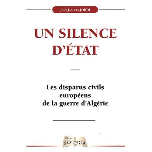 • Un silence d’état, les disparus civils européens de la guerre d’Algérie. Aux éditions Soteca (octobre 2011). L’enseignant-chercheur Jean-Jacques Jordi revient sur ce volet de la guerre d’Algérie sur lequel bien peu d’historiens se sont penchés jusqu’ici. La majeure partie des disparus le furent après les Accords d’Evian et après l’indépendance de l’Algérie. Commentaire sous peu.