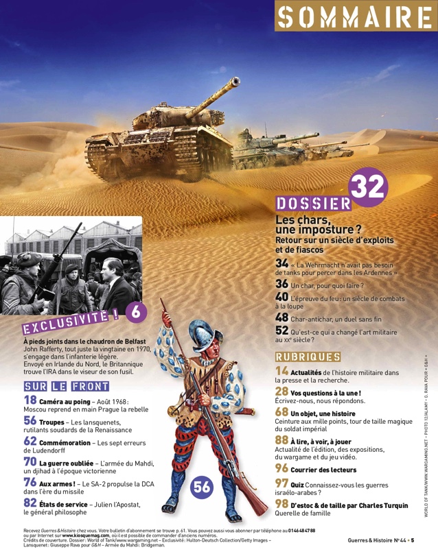 En sujet central, « les chars, une imposture ? », un dossier qui semble venir tout droit du sujet traité par Jean-Claude Delhez dans son « Chars d’assaut. Un siècle d’imposture » paru en octobre 2017.
