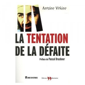 Dans « la tentation de la défaite », Antoine Vitkine se projette dans l’avenir proche 2008-2010 partant de l’hypothèse plausible d’un retrait des USA du Moyen Orient et d’un retour à une politique isolationniste comme le « pays monde » sait en avoir périodiquement. On y découvre la montée en puissance de l’islamisme au niveau des états et la gestion des événements par les européens désormais en première ligne, tout particulièrement au niveau de la France.
