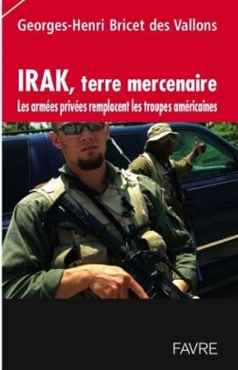 - Irak, terre mercenaire, les armées privées remplacent les troupes américaines de Georges-Henri Bricet des Vallons. L’auteur nous propose un voyage au pays des SMP (sociétés militaires privées) de leur genèse aux engagements majeurs de ce début de 21ème siècle: en Irak et en Afghanistan. Je l’ai démarré, il me paraît très bien. Commentaire rapidement. Aux éditions Favre à Lausanne (nov. 2009).
