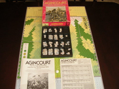 - Agincourt de James Dunnigan. Un « collector » du SPI de la grande époque (1978) sur cette défaite nette de la chevalerie française face aux arcs longs anglais. Ah, cette guerre de Cent-Ans !
