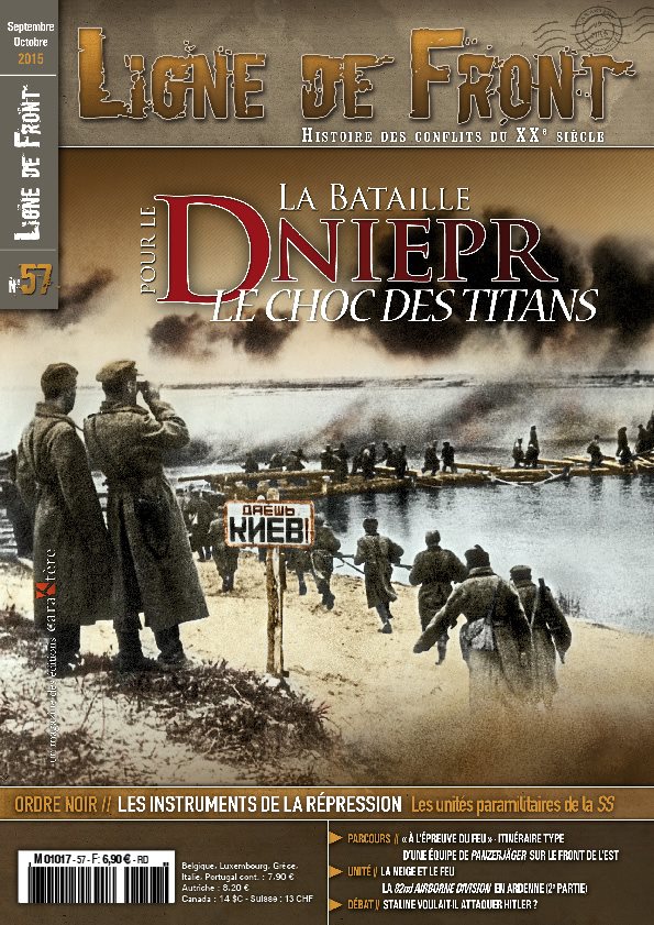 - La bataille du Dniepr, le choc des titans. Septembre 1943-Février 1944. Par David François. C’est l’article central de ce numéro de Ligne de Front. On est frappé par le gigantisme des moyens engagés et des opérations réalisées. Avec un focus sur le chaudron de Korsun-Tcherkassy.