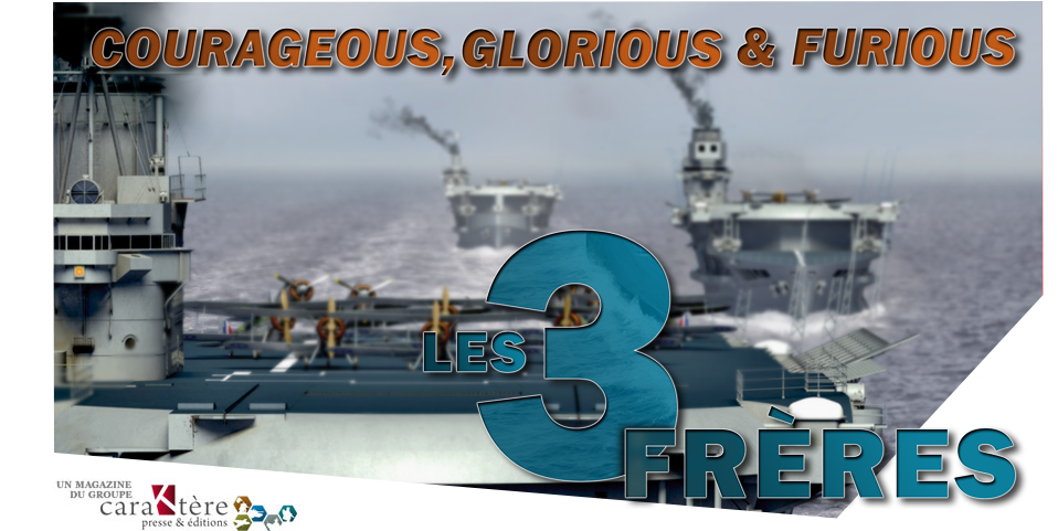 - Les 3 frères: les HMS Courageous, Glorious & Furious. Navires d’un autre temps quand la 2° guerre mondiale éclate, les « trois frères » tiendront leur rang cependant. En fait l’article est particulièrement intéressant pour comprendre l’évolution des porte-avions de la 1ère guerre mondiale jusqu’à la seconde. Un travail bien mené par Xavier Tracol. Très belle iconographie également.
