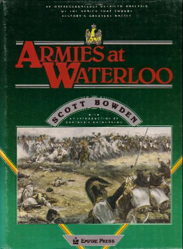 Scott Bowden est particulièrement connu des wargamers pour sa règle de jeu « Empire » extrêmement réaliste. Il nous propose ici les ordres de bataille très complets des armées françaises, prussienne et anglo-hollandaises lors de la campagne de Belgique de 1815 qui prit fin à Waterloo. Les tableaux de pertes sont également présents. Sûrement l’ouvrage le plus exhaustif sur ce sujet.
