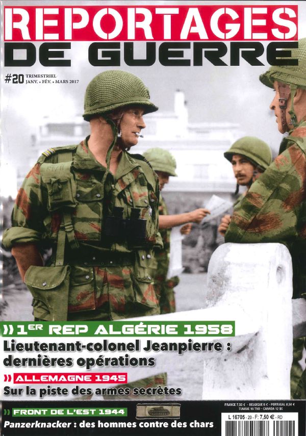 - Lt- colonel Jeanpierre, dernières opérations. Un reportage consacré à une légende de la Légion Etrangère et des paras. Ici aussi un texte très centré sur le bilan des dernières opérations du régiment de Jeanpierre, le 1er REP mais aussi sur la personnalité du lieutenant-colonel. Sources secondaires. Par Maurice Navière.