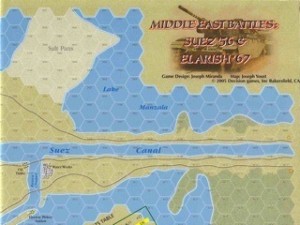 - le système de jeu est le même pour les deux wargames, chaque unité représentant un bataillon ou un régiment. Les échelles, par contre, sont bien différentes: 360 yards par hexagone dans Suez’56 et 1,6 kms dans El Arish, chaque tour de jeu représentant respectivement de 6 à 8 heures de temps réel.