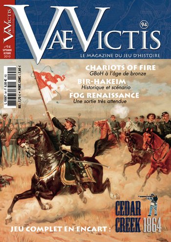 - Cedar Creek 1864: un article historique pour accompagner le mini-jeu en encart de ce numéro 94 de Vae Victis avec deux cartes claires. Signé de Laurent Martin, auteur du jeu. Je passe.